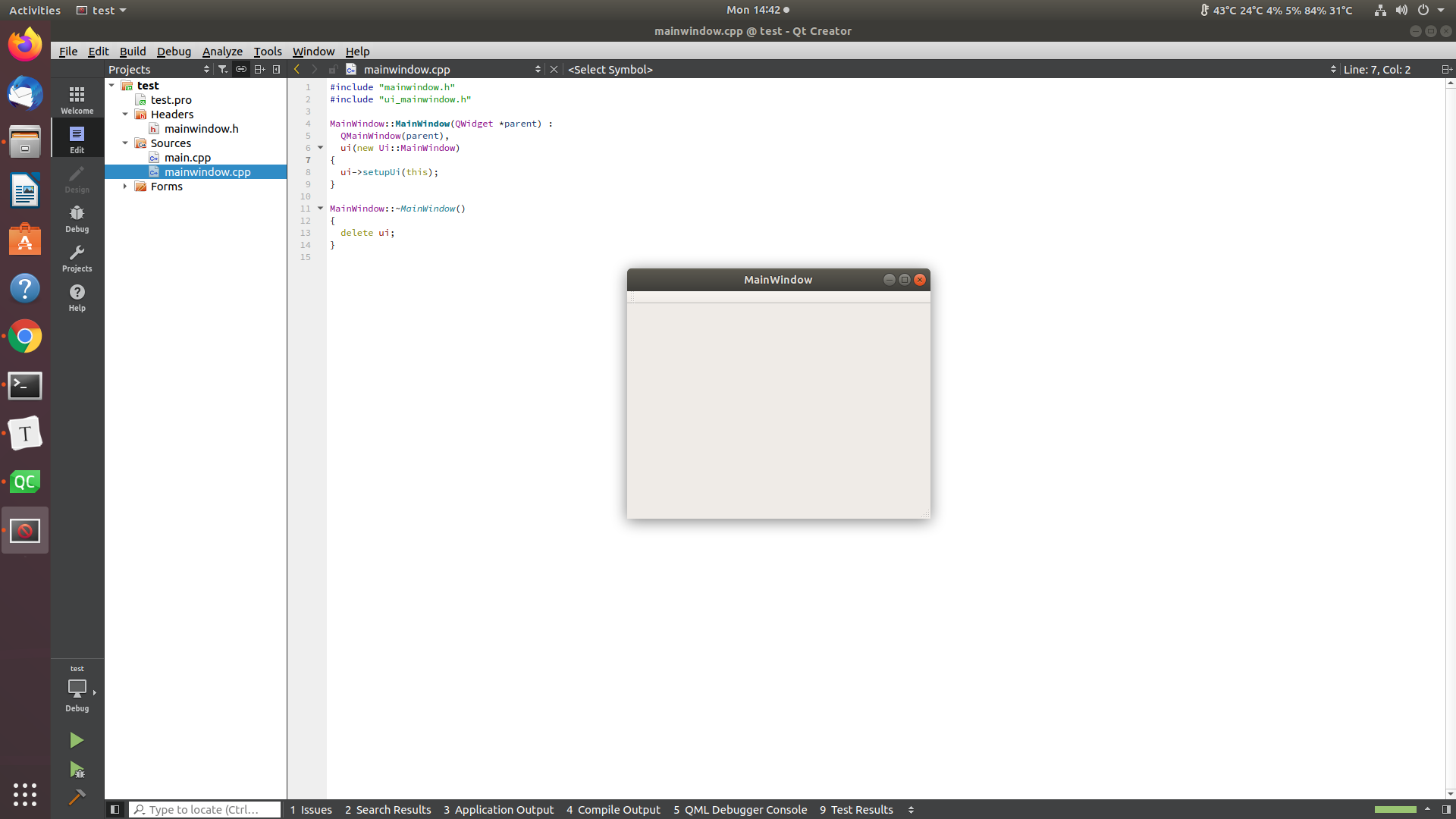 Ctrl + Rto build and run. You should see a blank application window like this one