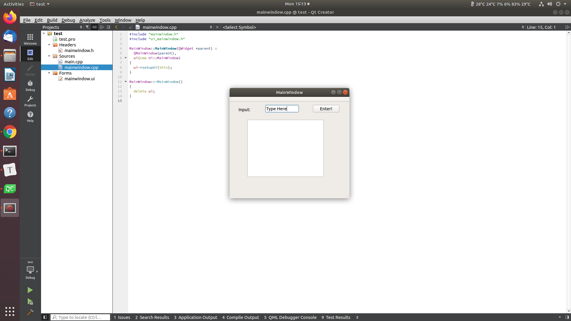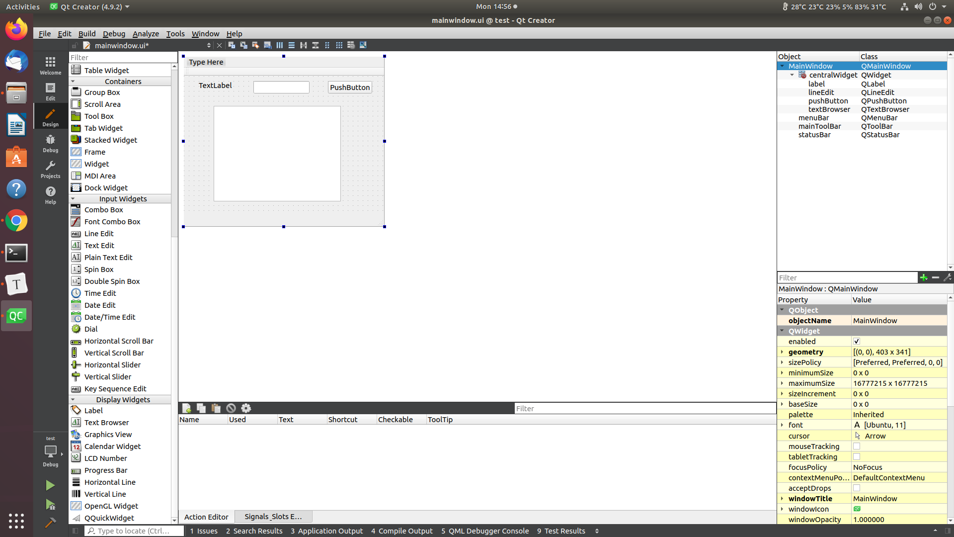Ctrl + Rand you should see your widget. Try to type on the line edit widget