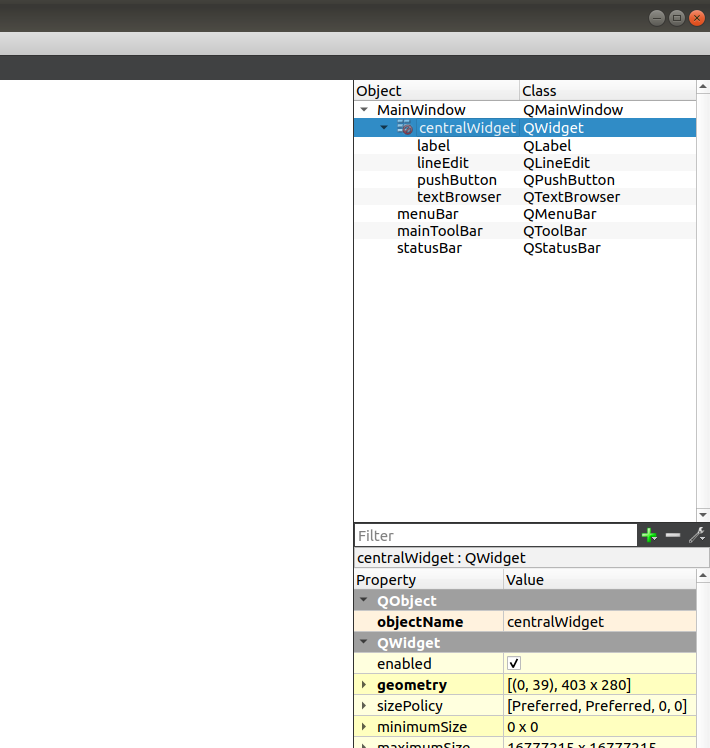 MainWindowwindow. and navigate to themainwindow.uifile underFormson the left menu. It will automatically switch to theDesigntab and open this UI editor tool